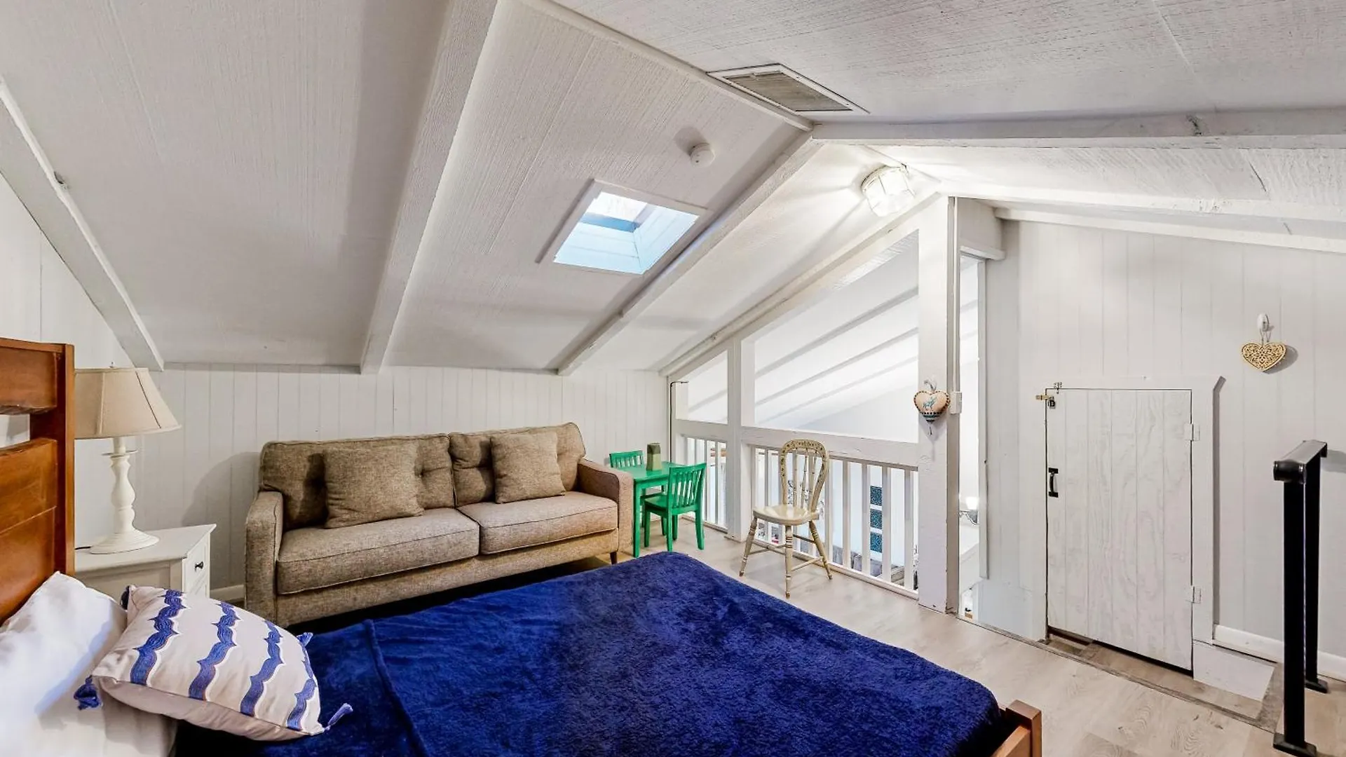 Zur Zimmerausstattung gehören sowohl WLAN und ein Fernsehen mit mehreren Kanälen als auch ein Bügeleisen/Bügelbrett und eine Klimaanlage. Der Innenraum ist mit einem Sofa ausgestattet und verfügt über einen Kamin. Zur Ausstattung des Badezimmers gehören eine getrennte Toilette und eine Dusche sowie ein Haartrockner und ein Wäschetrockner.